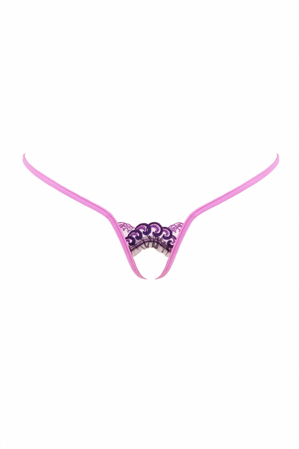Verführen und verführen lassen: Mit dem neuen String Ouvert The Bridge in Pink laden Sie Ihr Gegenüber zur Entdeckungsreise Ihrer intimsten Körperstellen ein. Das winzige Dessous wird von zarten Stickereien in Lila und einer gerüschten schwarzen Tüllkante geschmückt und von zarten elastischen Bändern an seinem Platz gehalten. Am Rücken münden die pinken Bänder in silberfarbene Schmuckringe und in ein ebenfalls liebevoll besticktes Spitzendetail. Der offene Micro String umrahmt sinnlich Ihre geheimsten Körperregionen und lässt Ihnen zugleich jegliche Freiheit beim Liebesspiel: er muss nicht ausgezogen werden! Lieferung in einer hübschen Faltschachtel.