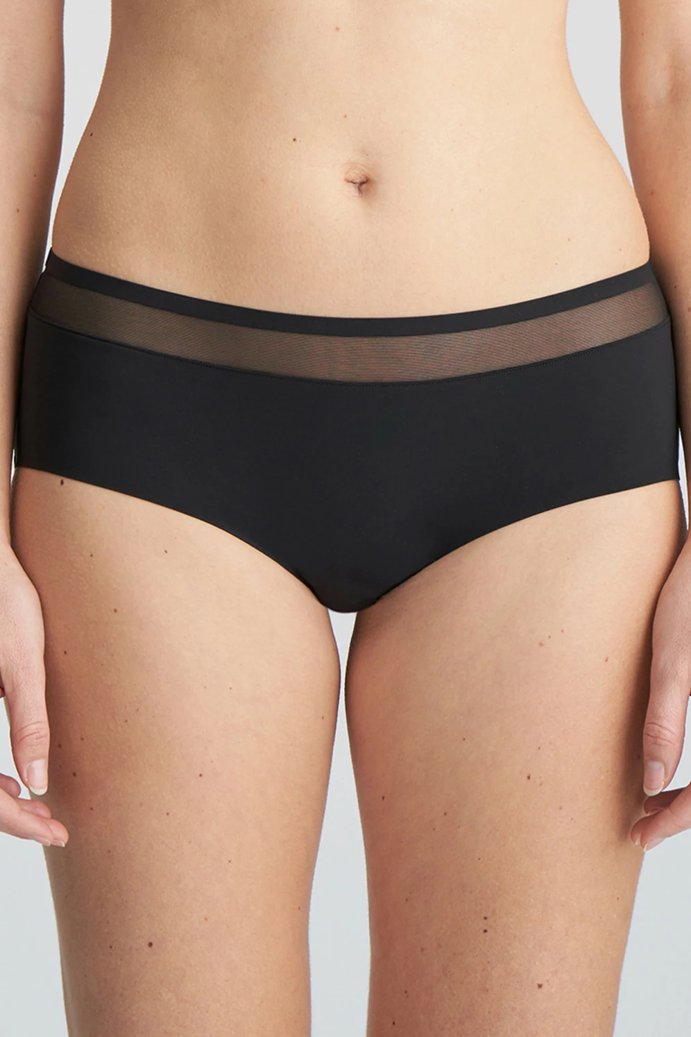 Flach am Körper liegende Shorty mit nahtlos verarbeiteten Rändern und einer ebenso eingefügten Tüllpasse. Dieser zart schimmernde Streifen verläuft rundum, zeigt sich sportiv schick und dezent transparent. Der etwas vertiefte Sitz sowie hohe Seiten sind typische Merkmale des Modells. Herrlich weiches opakes Material sorgt für ein super angenehmes Tragegefühl – jeden Tag.