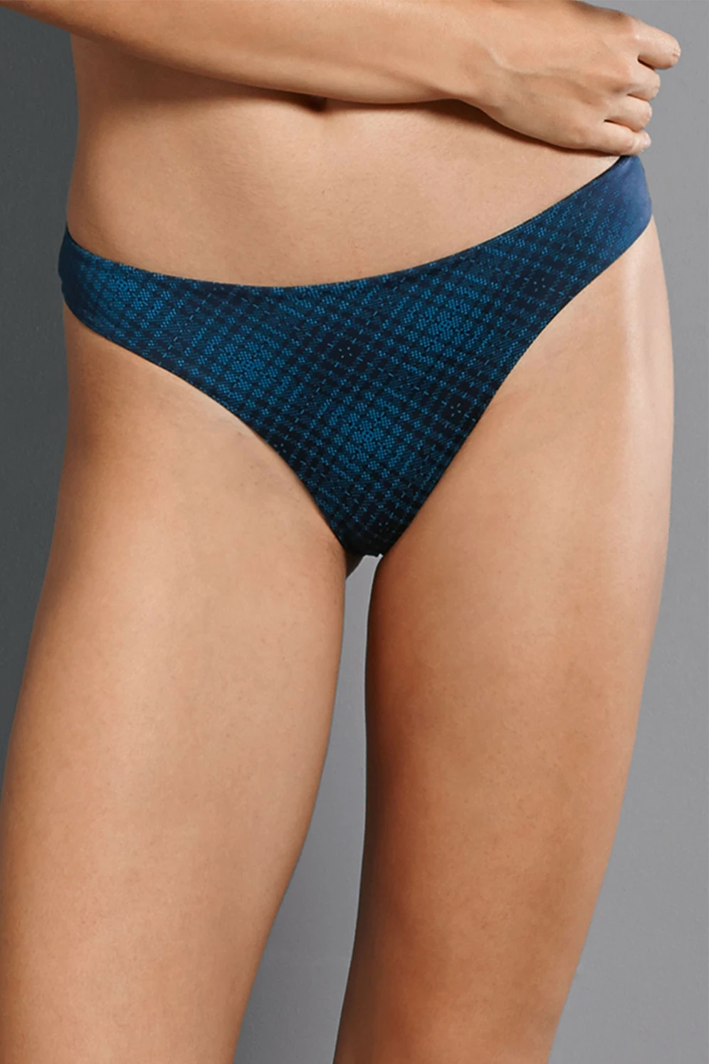 String mit umgestülpten Rändern – dadurch wirkt das Modell sehr elegant. Das filigrane Karomuster im dezenten Farbton verleiht zeitlosen Chic. Dank weicher, elastischer Mikrofaser entsteht ein angenehm softes Gefühl auf der Haut.