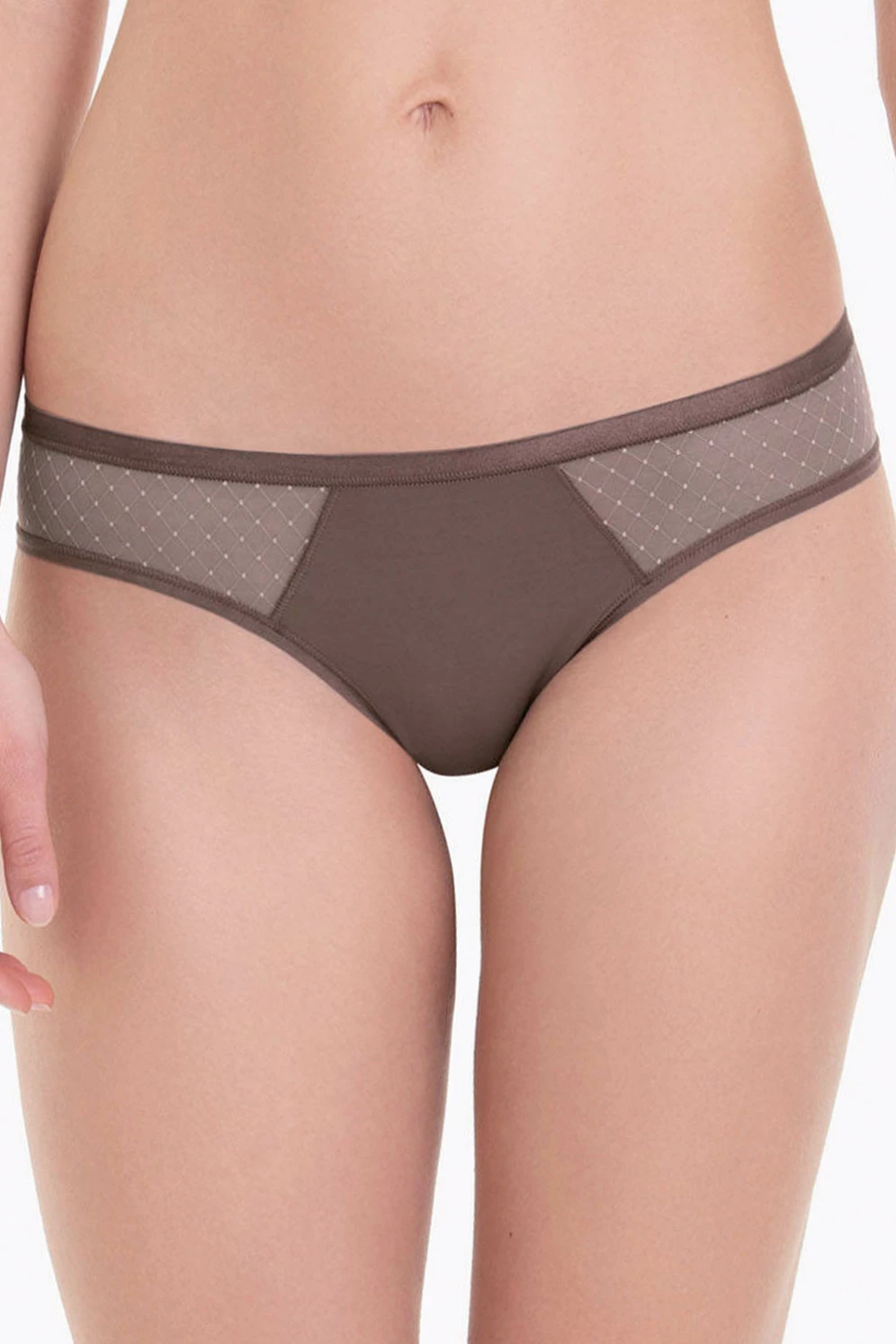 Diese Shorty gefällt mit ihrem Schnitt, durch den sie vorteilhaft am Körper sitzt. Vorn und hinten aus opakem Material, zeigen die eingefassten seitlichen Passen den zarten Gittertüll direkt über der Haut. Bund und Beinränder bestehen aus elastischen Stoffstreifen. Die knappe Form des Rückens und die dezente Vertikalnaht setzen den Po verführerisch in Szene.