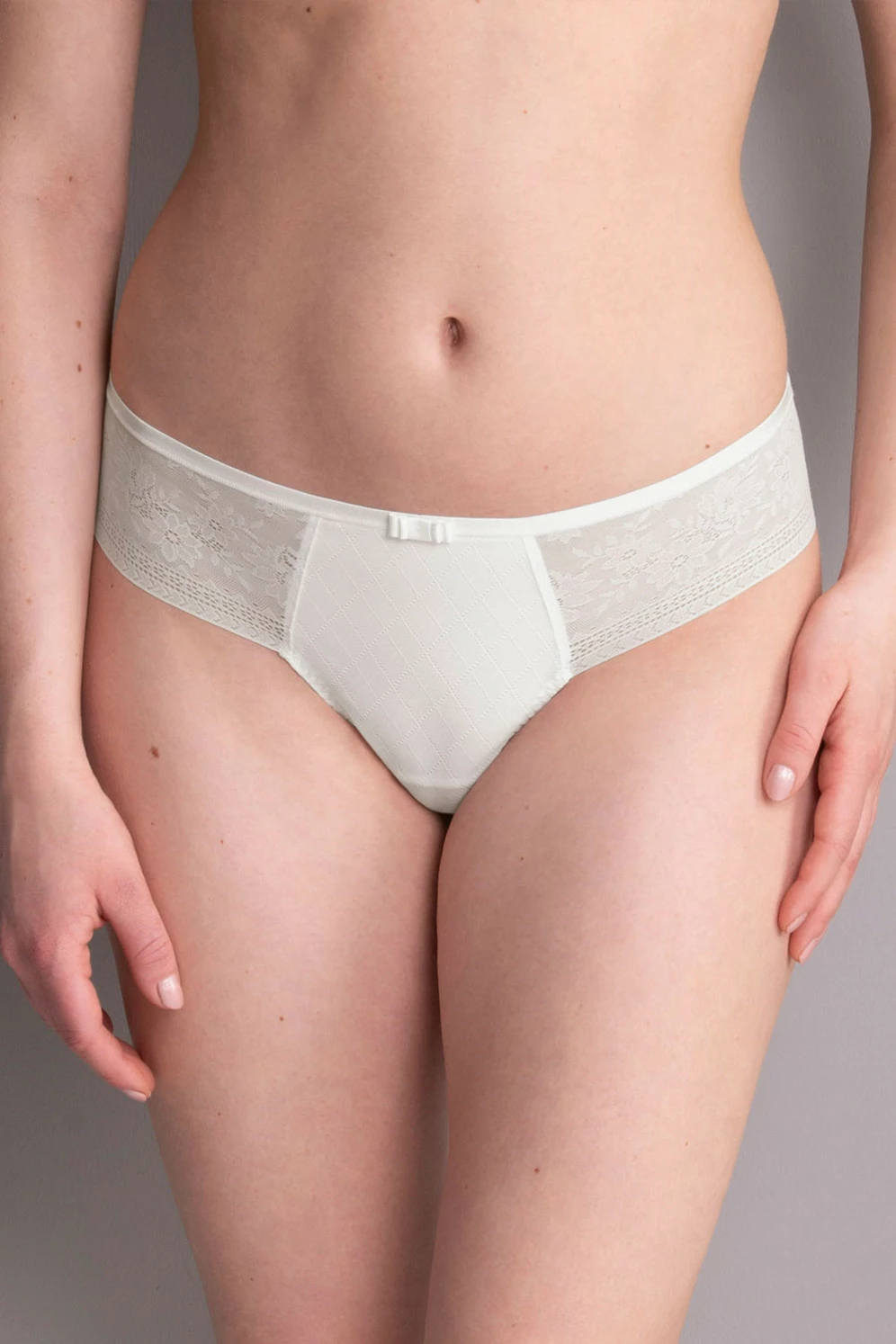 Bezaubernde Shorty, die durch ihre flache Stretchspitze mit tollen Ajouren hübsche Muster auf die Haut malt. Nur die vordere Passe besteht aus opakem Stoff, dem ein dezentes Karo innewohnt. Das sehr dehnbare Höschen schmückt vorn mittig eine gerade Schleife. Hinten gefällt es durch seinen knappen Schnitt mit Mittelnaht. Ein reizvolles und praktisches Modell.